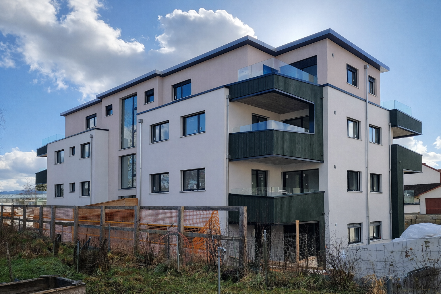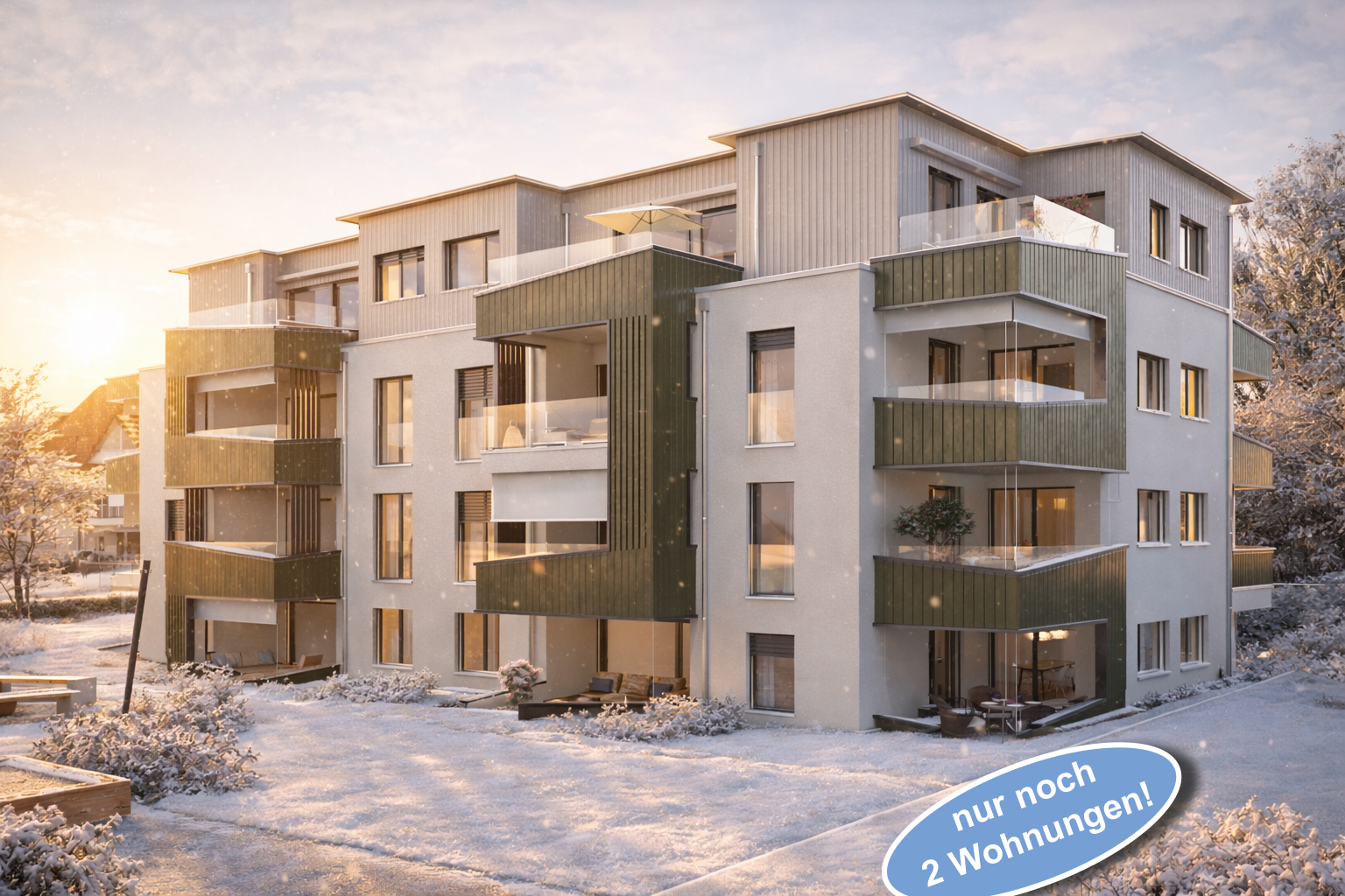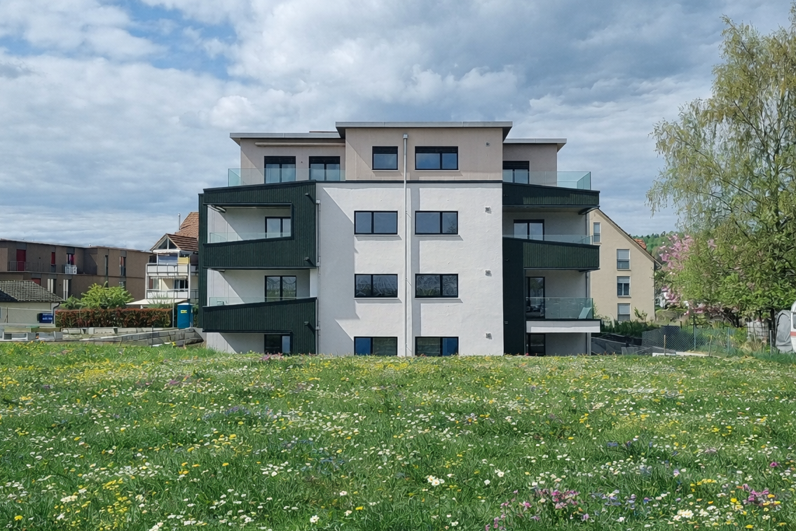 Der grosszügige Wohn- Essbereich bildet das eigentliche Zentrum der Wohnung. Die moderne und gut ausgestattete Küche bietet genügend Platz zum gemeinsamen Kochen. Die Küche befindet sich links des Wohn-/Esszimmers mit direktem Ausgang zur Terrasse. Dadurch gewinnt das Wohnen an eleganter Grosszügigkeit. Beim Zimmer 2 ist eine Schiebetüre vorgesehen, um diesen Raum individuell nutzen zu können. Bei frühzeitiger Kontaktaufnahme, kann auch ein normales Zimmer gestaltet werden. Die eine Terrasse kann sowohl von der Küche, wie auch vom Wohnzimmer begangen werden. Die andere vom Wohnzimmer, sowie auch vom Zimmer 2. Die Schlafzimmer sind grosszügig bemessen.
